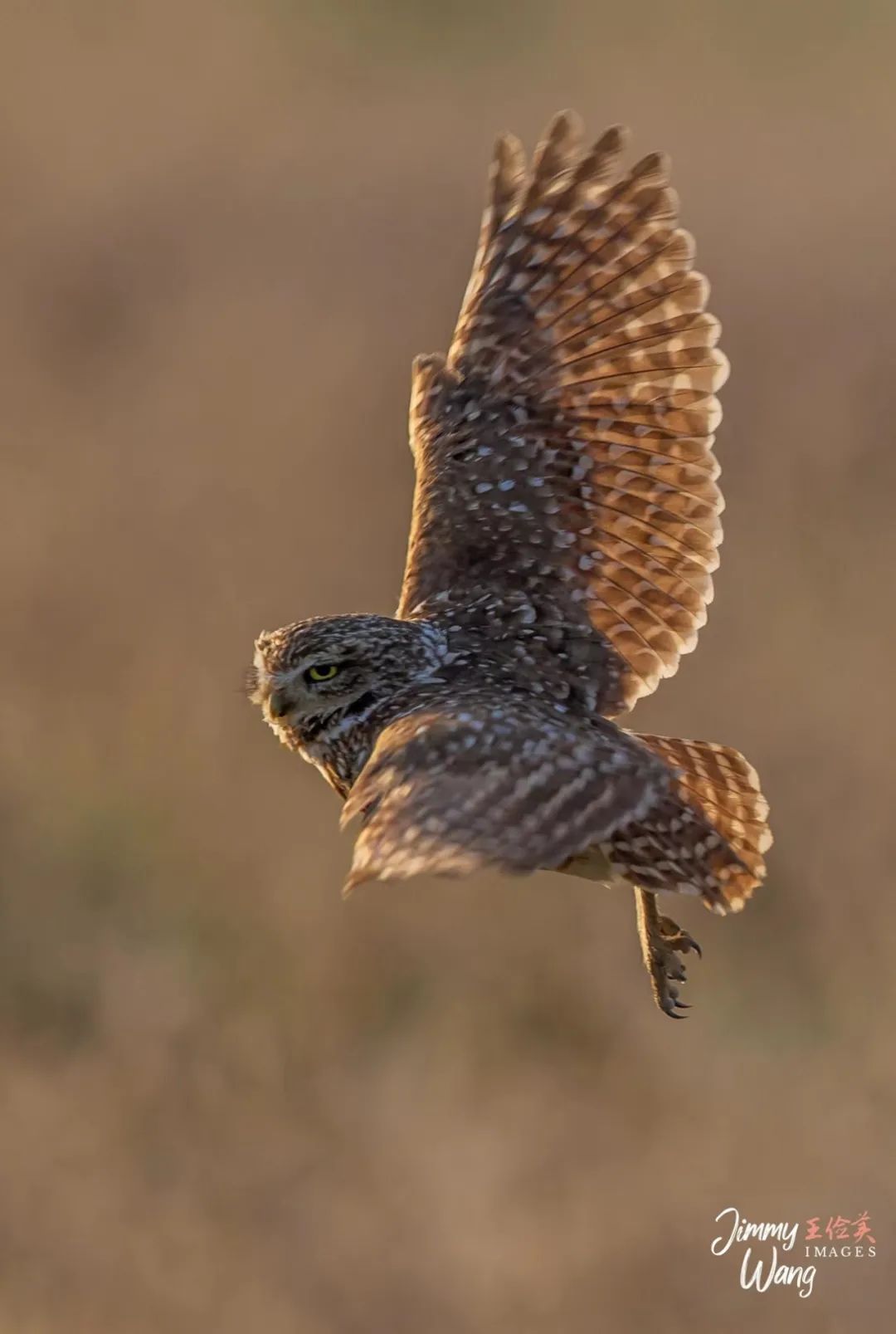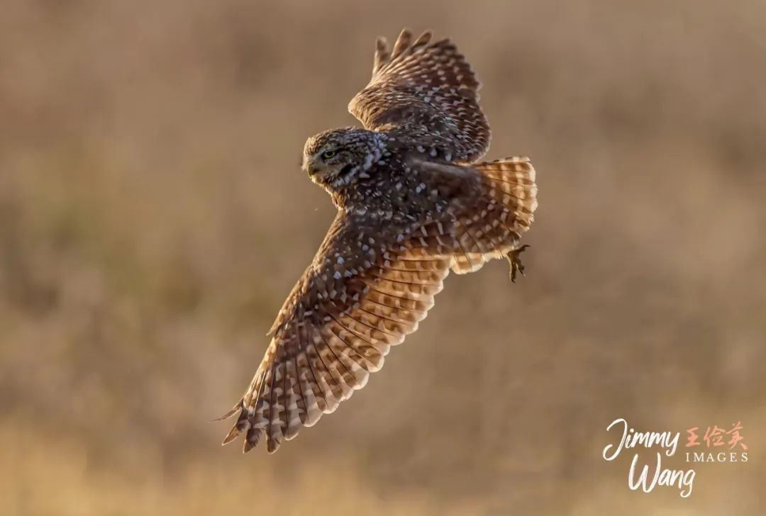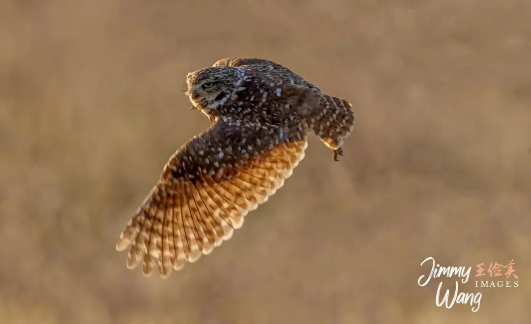 今年二度拍到穴小鸮(Burrowing Owl )。4月25日,我们再次来到洛杉矶东区的安大略(Ontario)国际机场,耐心守候、眼明手快摄到各种飞版的穴小鸮。