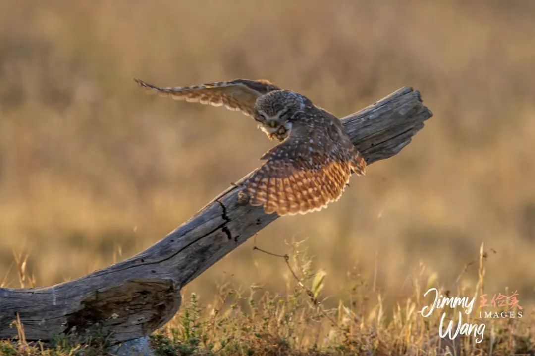 还拍到了穴小鸮幼仔学飞的可爱模样。不管飞得起来与否,姿势是够美的,宝宝也尽力了。