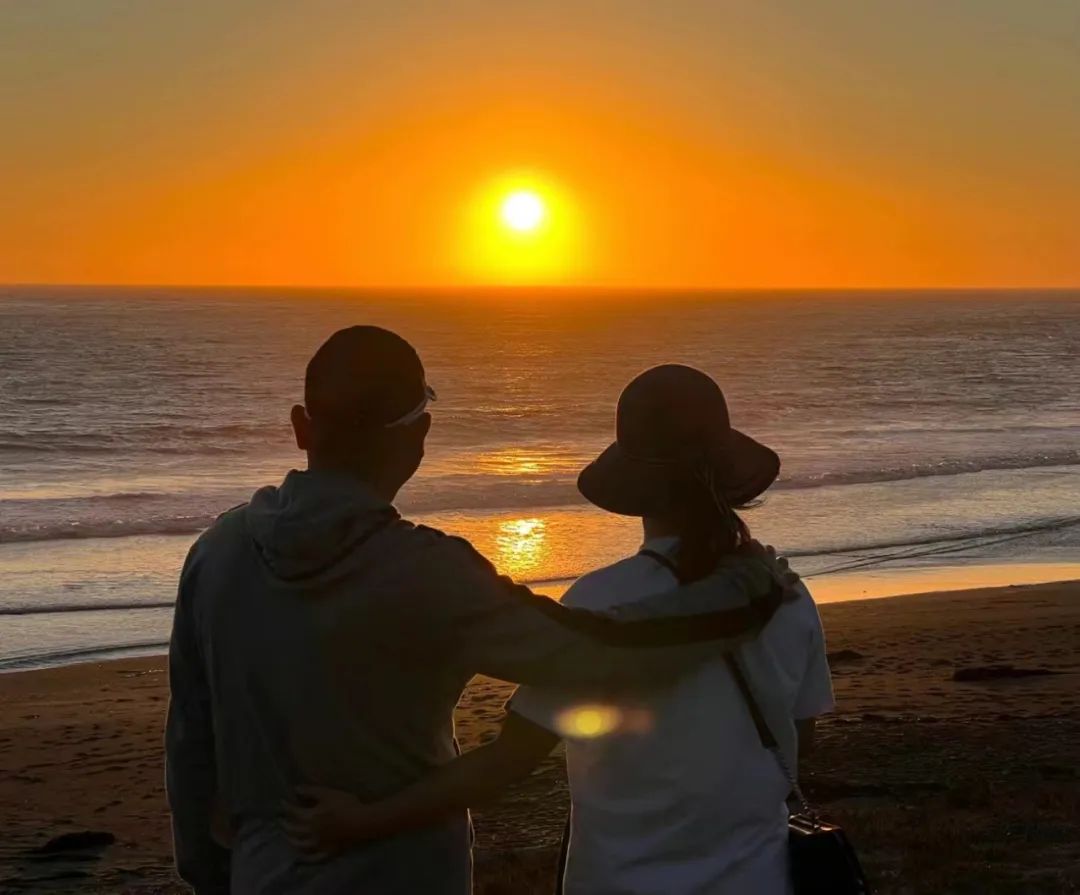 暮色四合,海天一色,落日余晖映你欢颜,人家烟火,周遭可亲。