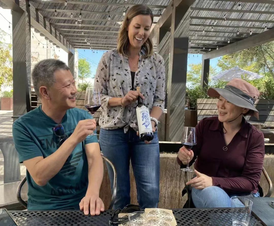 中加州的酒乡也是远近驰名的,我们随便选了一家酒庄。品酒每一位40刀,如果买了酒超过60刀,品酒费免了。有六种酒供你品尝,大约三分之一杯。服务生要介绍每一种的特性和背后的故事。加州葡萄酒多为风格简朴、果味浓郁的新世界酒。温暖的天气赋予了加州葡萄酒较高的酒精度,许多葡萄酒的酒精度都超过了13.5%。