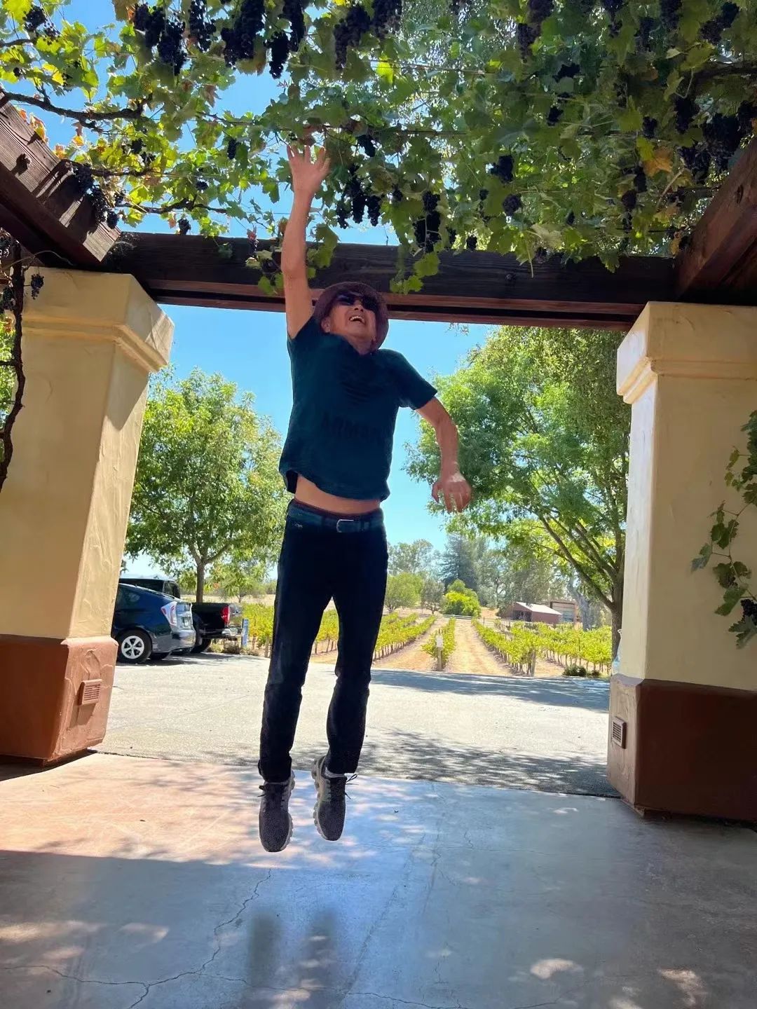 美丽的葡萄架,抬头可探知葡萄酒的由来。一跳冲天,空中摘果。