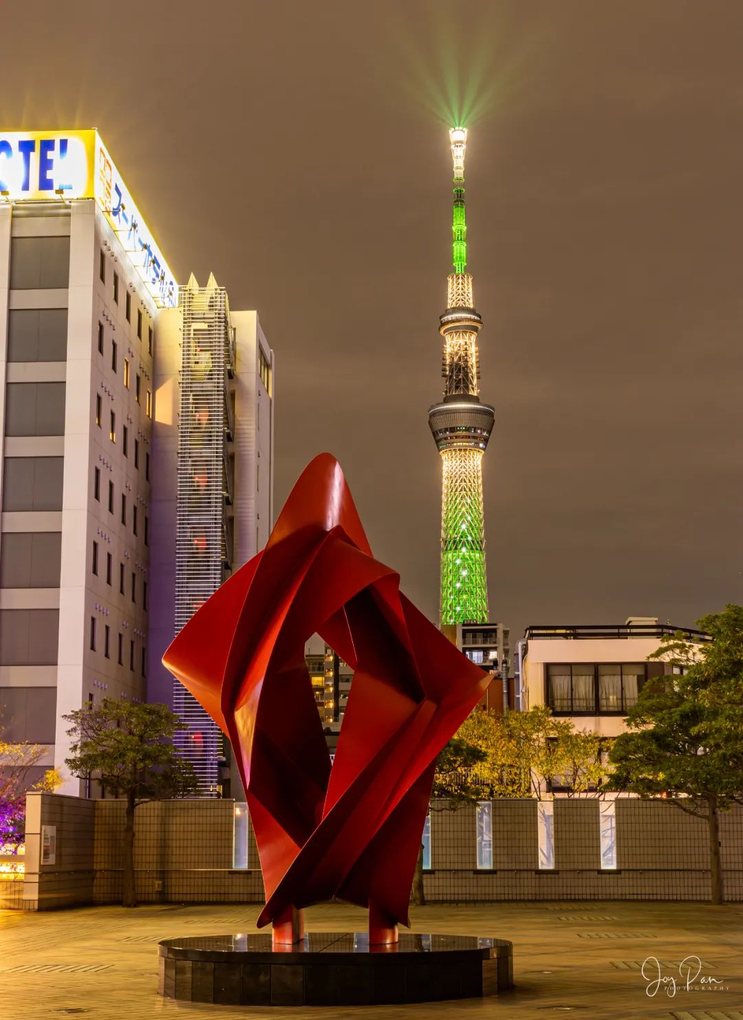 【贝迩佳Club】专栏作家:潘平微 /文字、摄影 编辑:Rain Wang东京旧名江户,是德川幕府的所在地,在1868年9月改名为东京。位于日本关东平原中部,是面向东京湾的国际大都市,日本三大都市圈之一东京都市圈的中心城市。2022年3月,入选“全球最具未来感十大城市榜单”,排名第四名。是一座集文化与时尚于一体、古老又摩登的文化之城、摄影圣地、购物天堂。去日本不去东京,等于认识一个人,却没看见过他的眼睛——心灵。穿越时空,东京,我来了!我们在东京小住2晚,酒店门口可以看到“天空树”这个新地标。窗外是高楼拔地而起,楼底下就有火车电车穿行其间。东京天空树(Tokyo Sky Tree)是位于日本东京都墨田区的电波塔,又名“东京晴空塔”。被吉尼斯世界纪录认证为“世界第一高塔”,成为全世界最高的自立式电波塔。除了铁塔主体之外,东京天空树尚有其他附属设施,整个街区被称为“东京天空树城”。