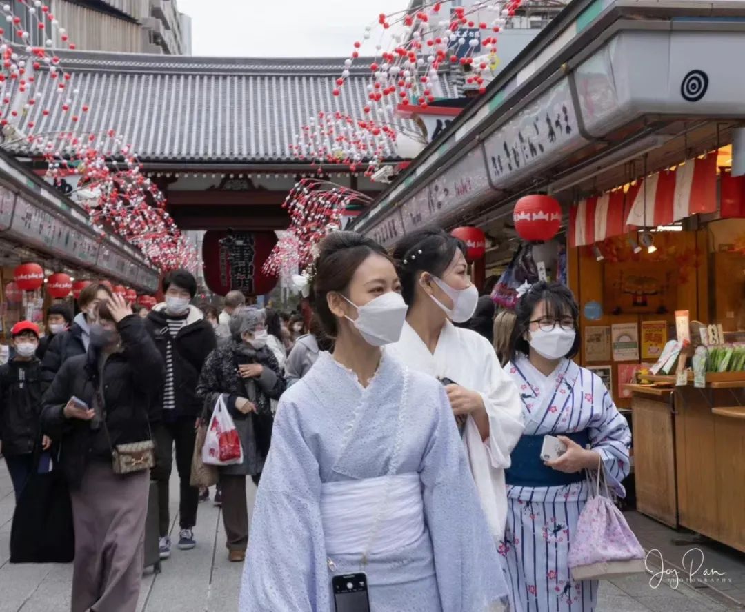 Official Hotel,东京晴空塔酒店,摩登的装潢,典雅的和服,古老的江户文化与现代多元潮流风尚新旧杂糅,兼容并蓄,这就是古老又年轻的东京了。浅草寺(Sensoji Temple)位于东京都台东区,是日本现存的具有“江户风格”的民众游乐之地,也是东京都内最古老的寺庙。寺院的大门叫“雷门”,正式名称是“风雷神门”,是日本和浅草地区的象征。除浅草寺内堂外,浅草寺院内的五重塔等著名建筑物和史迹、观赏景点非常多。每年元旦前后,前来朝拜的香客,人山人海。匆忙之间去东京浅草寺打了卡,相机专门针对那些和服打扮的路人甲。穿上了木屐,自然就走碎步了吧?那婀娜的身姿分明是东京街头最靓丽的风景线。我这一身户外装是否与环境不协调?街头抓拍不易,人潮涌动,避不开闲杂人员,千里挑一的这些片子,我容易吗!