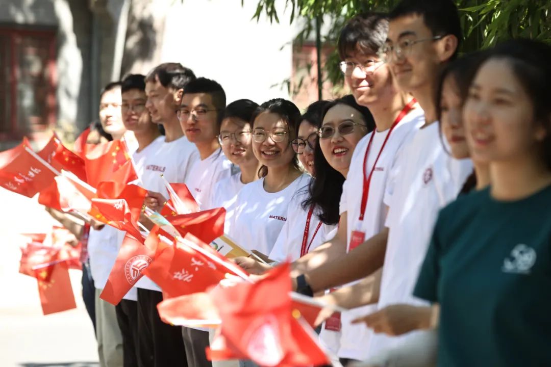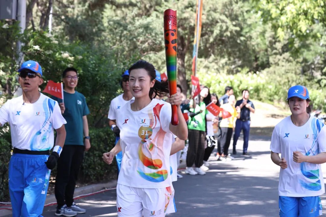 北京大学学子迎接火炬。