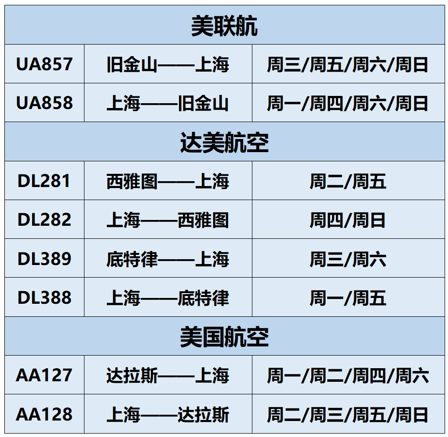 注:蓝色为新增4个直飞航班。航班随时可能有所调整,以官网为准。城市君制图