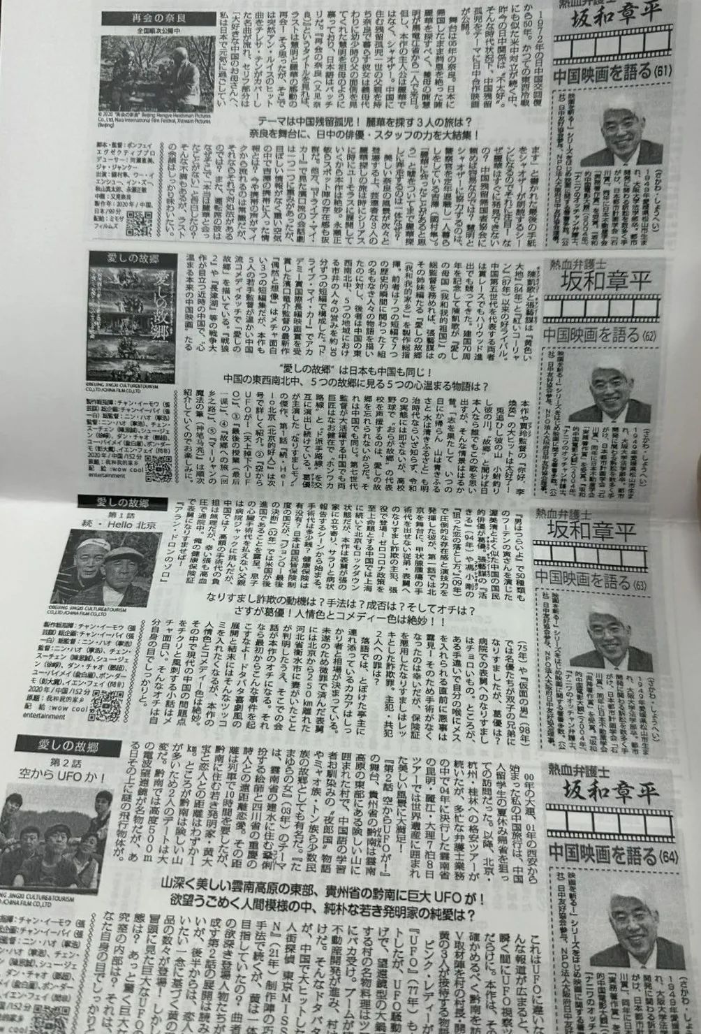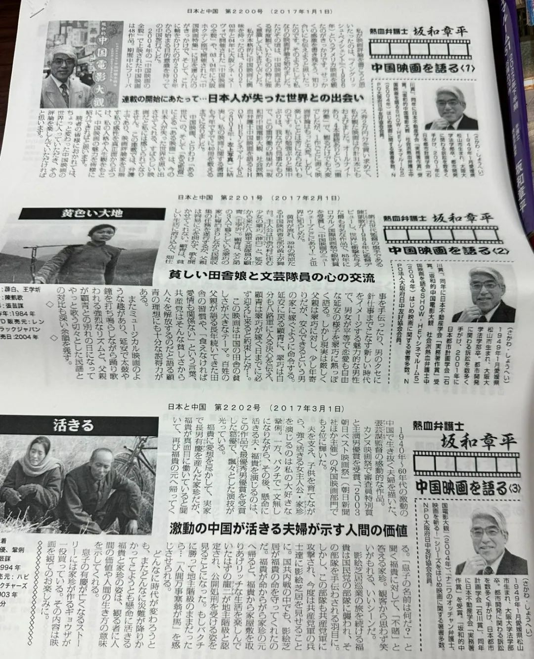 而后来转向评论中国电影,并且把时间和精力都专注于此,还得从坂和章平跟两个中国留学生的交往以及花2万日元观看了31部经典的中国电影说起。2001年,坂和章平先是认识了一位来自辽宁省大连市的中国留学生,并跟着去了一趟大连旅行;2002年,坂和章平又认识了一位来自陕西省西安市的中国留学生,然后又跟着这个留学生去了一趟西安、敦煌和厦门。几次旅行,不仅让坂和章平领略了中国的大好风光和各地民俗,也让他对中国历史和文化有了更多直观的了解。