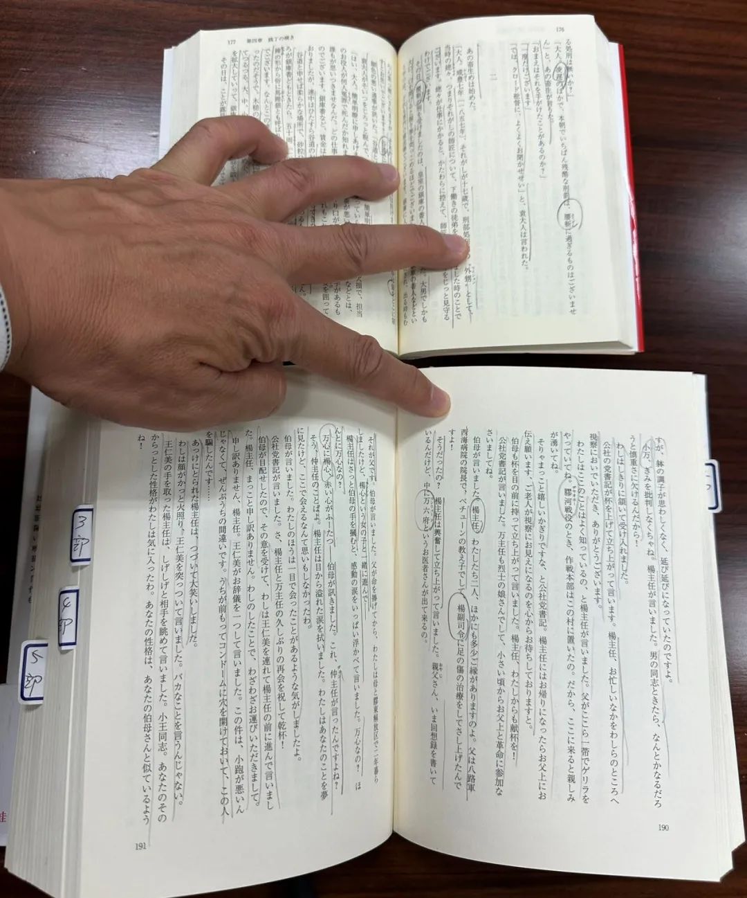 不仅看遍了中国电影和买回各种介绍中国电影的书籍,坂和章平还买了改编成这些电影的原著小说,其中最多的就是莫言的。由于文化、语言等差异,即使翻译成日语,莫言的小说要阅读和完全理解,对作为日本人的坂和章平来说也相当不容易。他说,《红高粱》还好,因为书本身并不长,涉及到的历史背景对日本人来说也好懂,其他一些著作确实是不容易的。为了弄明白书中和电影里的人物关系,坂和章平就用自己的方式,在书里做各种各样的标记,并且专门用纸把人名写出来,然后通过划线的方式做成了“人物关系表”。此外,他还专门赴北京电影学院交流,还在旅日作家毛丹青的推荐下赴山东省威海市旅行,参观了“中国甲午战争博物院”等等。