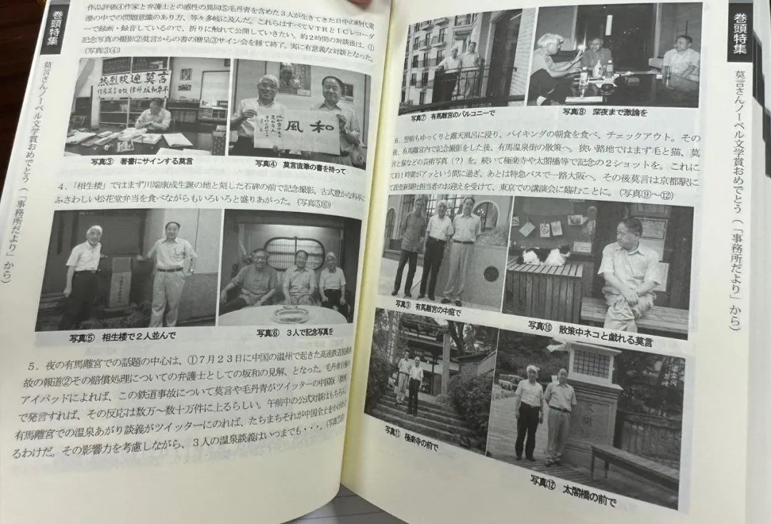 于是,对坂和章平的采访,很自然就是从他跟莫言的那次见面和交往说起:2011年6月,在获得诺贝尔文学奖前一年,莫言曾经赴日本访问,经朋友介绍,在6月26日、27日连着两天跟大阪著名律师,同时也因为撰写、出版了大量跟中国有关的影评书籍而知名的坂和章平见面和交流。那一次,坂和章平热情邀请莫言去家里吃饭,同时还陪莫言去了几十公里外的有马温泉泡澡。时隔12年后再谈到对莫言的印象,坂和章平仍称赞道:“他说话沉稳,不夸夸其谈,说出来的话都是经过深思熟虑,是可以信赖的那种人。”
