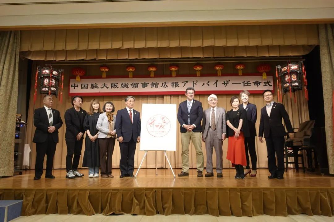 坂和章平(右四)等参加中国驻大阪总领事馆举办的2023年度公共外交顾问聘任仪式