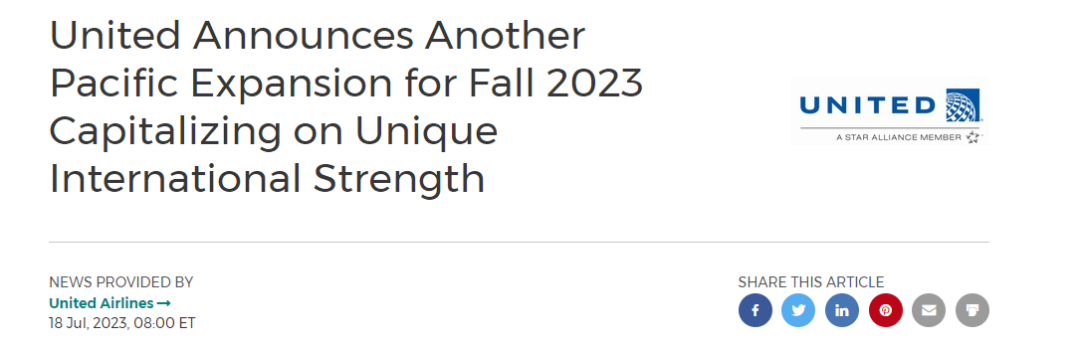 美联航将在今年冬季开通飞往太平洋地区15个国际目的地的长途航班。除了中国大陆航班外,美联航的跨太平洋航线将超过其他美国航空公司总和的50%。该公司此次航线扩张是基于需求持续增长的基础之上。